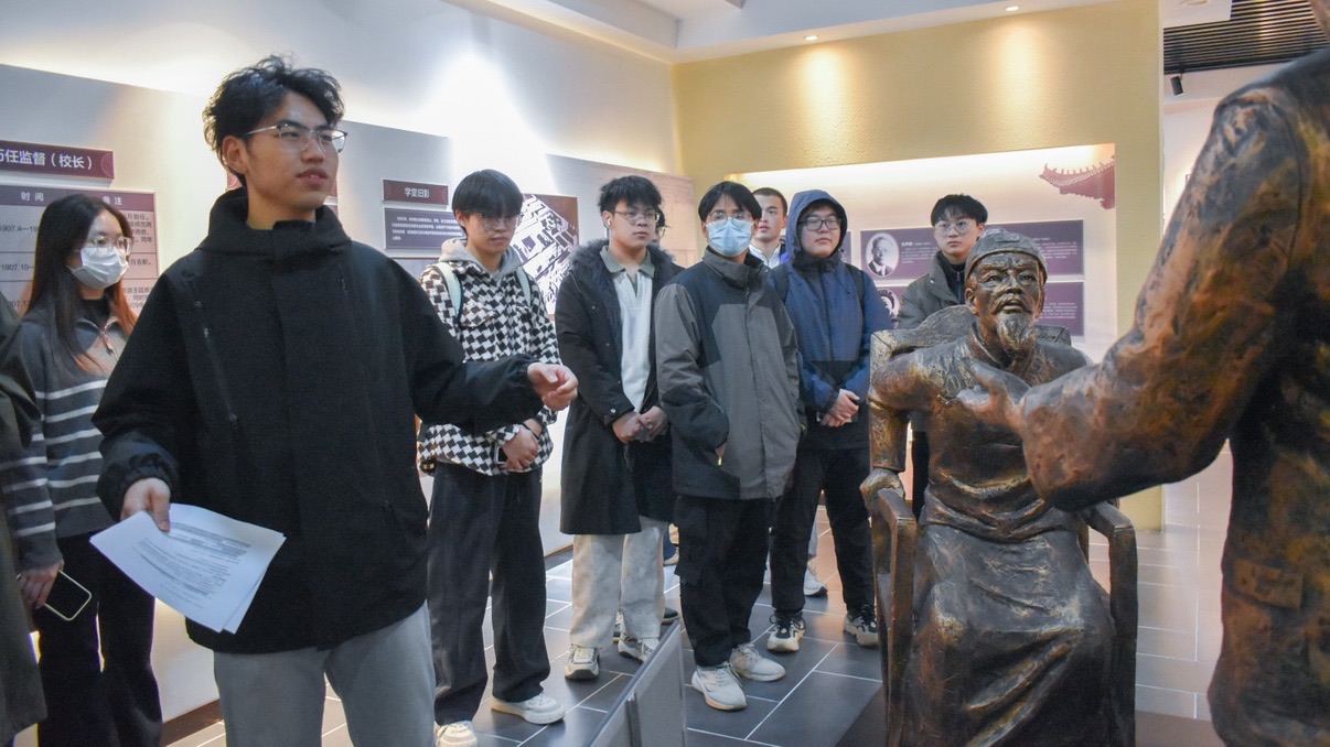 “大家请看这座《争锋》群雕——这位是推行尊孔读经的学监夏震武,而这两位,是坚持新思潮的鲁迅与许寿裳。”在学脉溯源部分,三人群雕定格了百年前的思想交锋,也让同学们直观感受到师大与生俱来的“革新基因”。