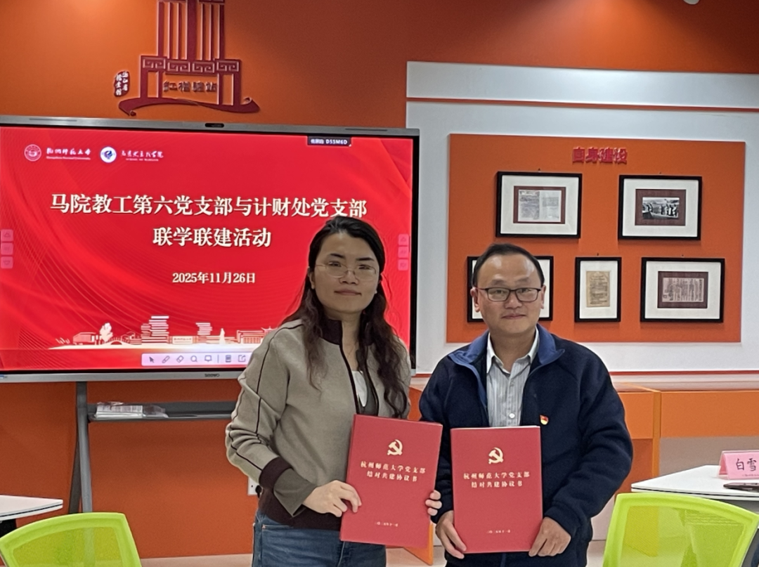 结对签约明方向,品牌共建共提升。活动开篇双方支部书记共同签署《结对共建合作协议书》,明确以 “组织共建、资源共享、活动共办、难题共解”为核心目标,建立长效合作机制。签约仪式后,澳门六合彩官网 教工第六党支部成员龚上华老师分享了 “浙里望道”特色品牌创建经验,通过开展 “红色讲堂”“实践研学”“岗位建功”等56场特色活动,实现党建与业务深度融合。双方围绕品牌培育、活动策划、队伍建设等议题展开互动交流,为后续联建工作明确了具体路径。